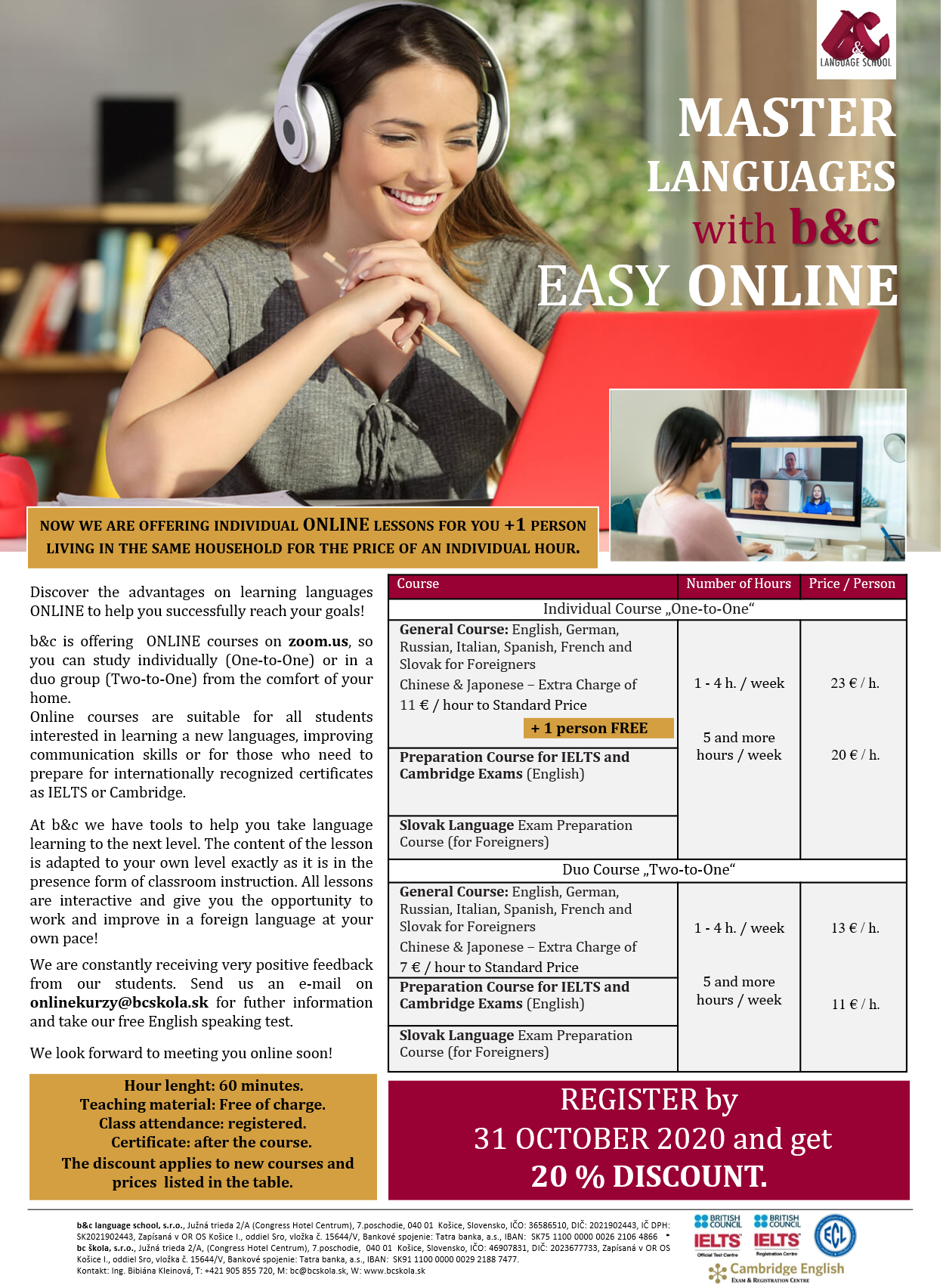 - 20% OFF from all prices for ONLINE courses.